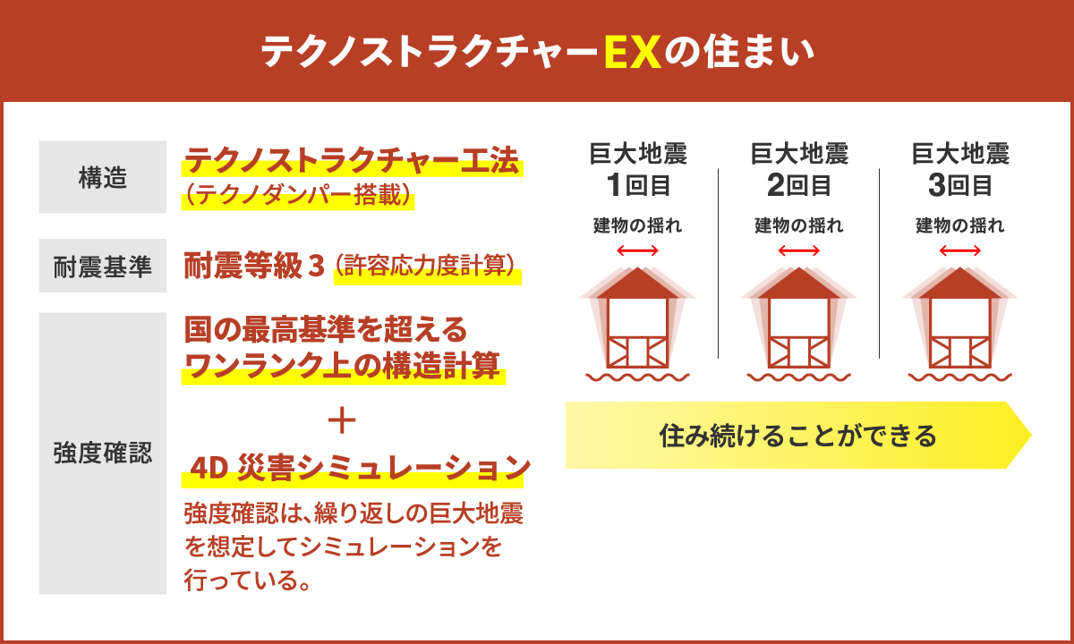 つまり、テクノストラクチャーEXの家は、 「実際にこの家がどんな揺れ方をするか」を、 建築前にシミュレーションで確認した上で建てられるということ。