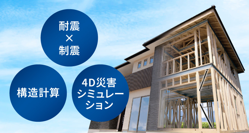 “固く守る”耐震構造と、“しなやかに受け止める”制震構造。 この2つのアプローチを融合することで、 大きな揺れにも粘り強く耐え、ダメージを最小限に抑える住宅構造を実現しました。
