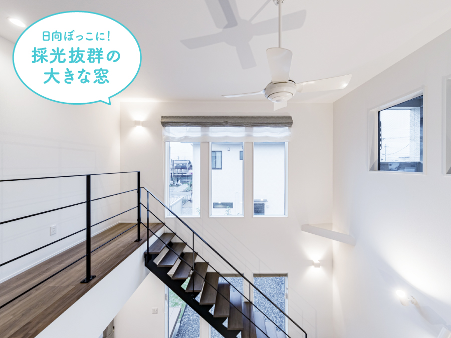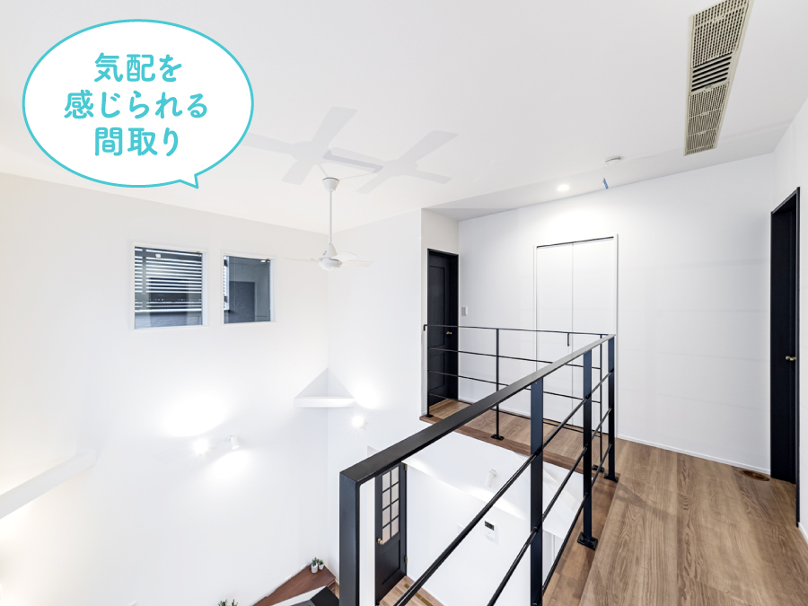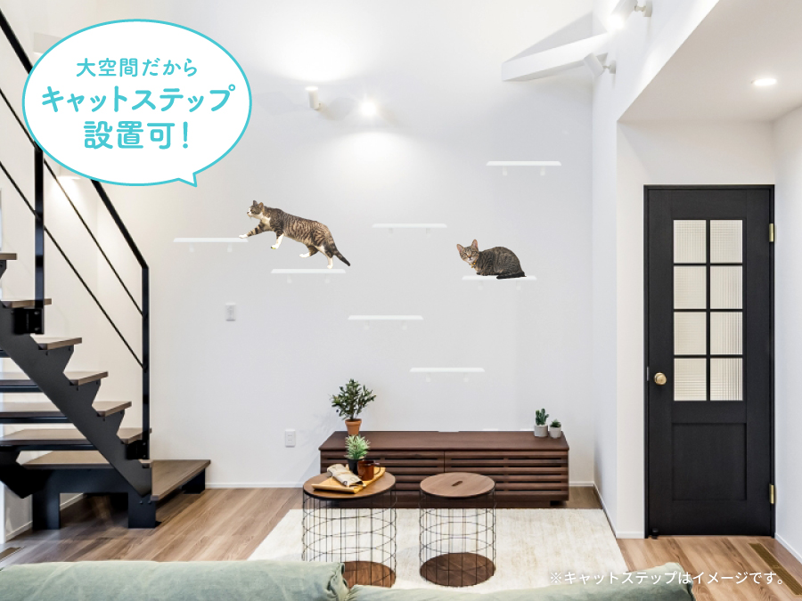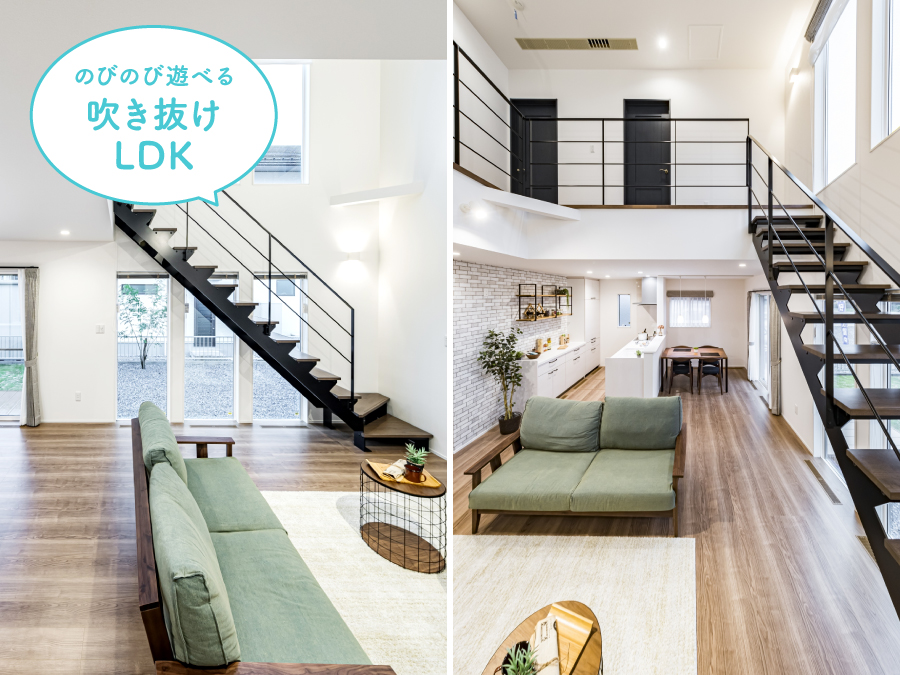 リビングは外観からは想像できないほどの開放的な吹き抜けの大空間!