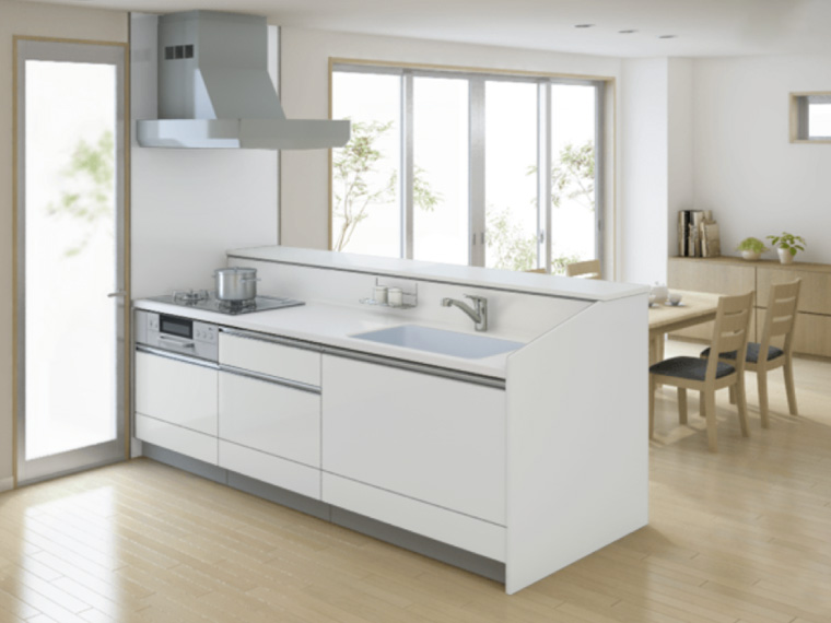 水栓回りに水がたまらず、上から水が出るキレイアップ水栓で毎日のお手入れが簡単です。