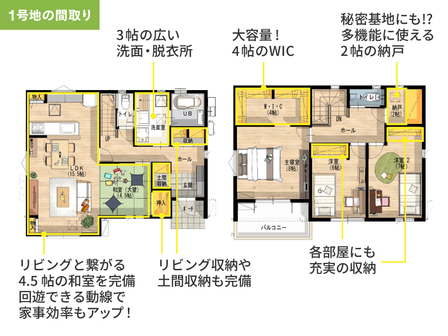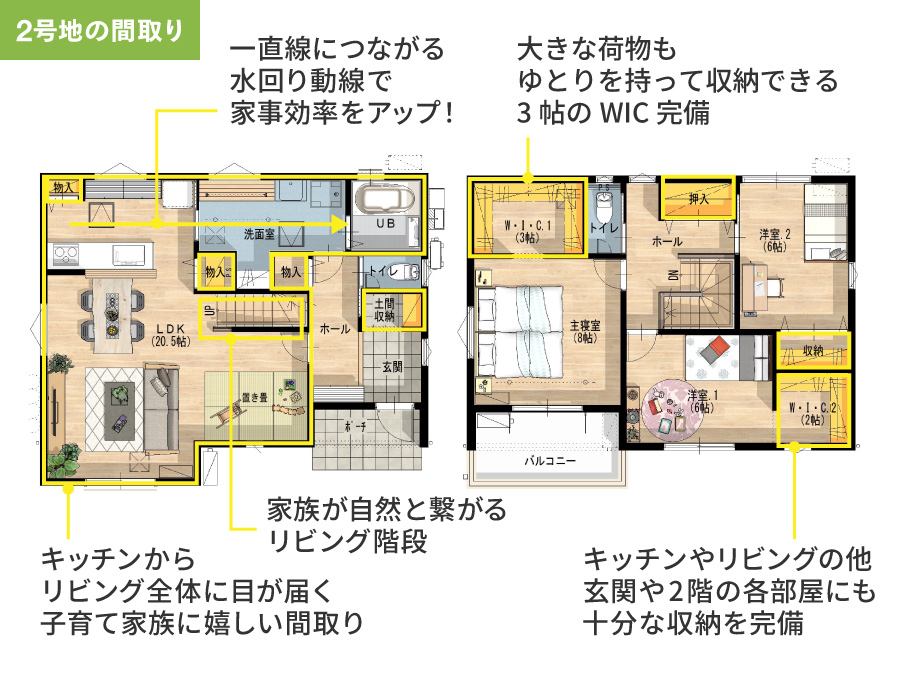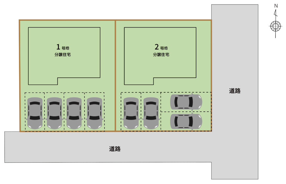 | 間取り | 1号地:3LDK 2号地:3LDK |