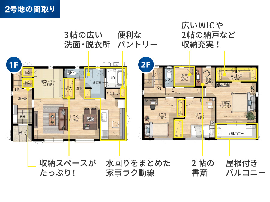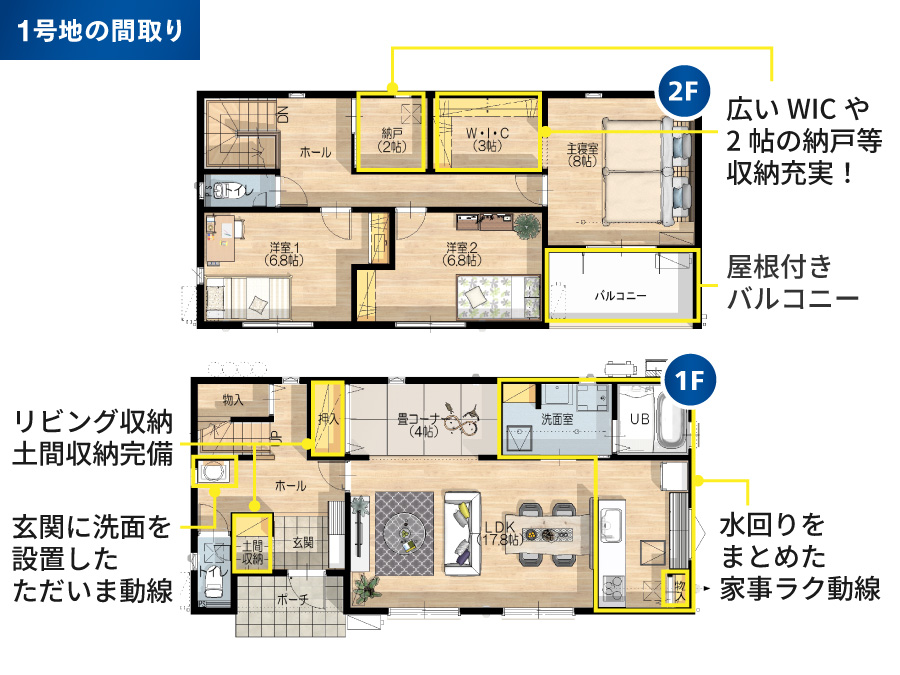 1号地:114.27㎡(34.56坪) 2号地:113.44㎡(34.31坪) |