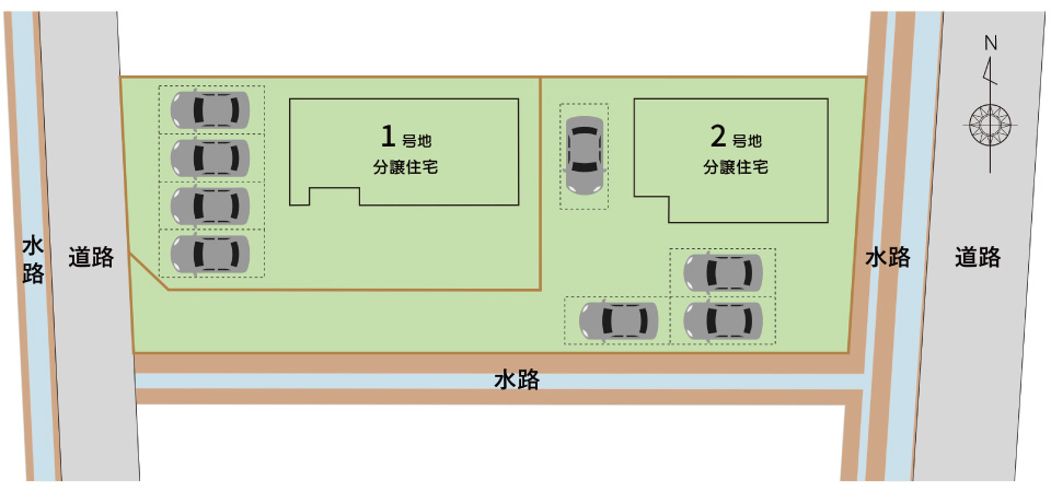 建ぺい率:1号地 60%、2号地 70% 容積率:160% |