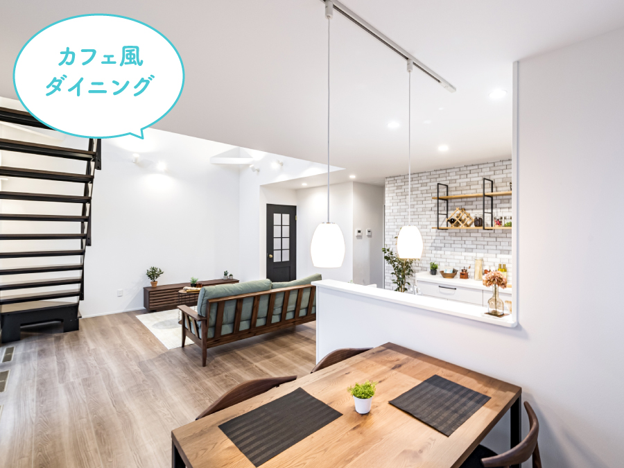 デザイン性にこだわったダイニングスペースは、まるでお気に入りのカフェにいるような特別なひとときを日常に。家族との食事も、来客時のおもてなしも、絵になる空間です。