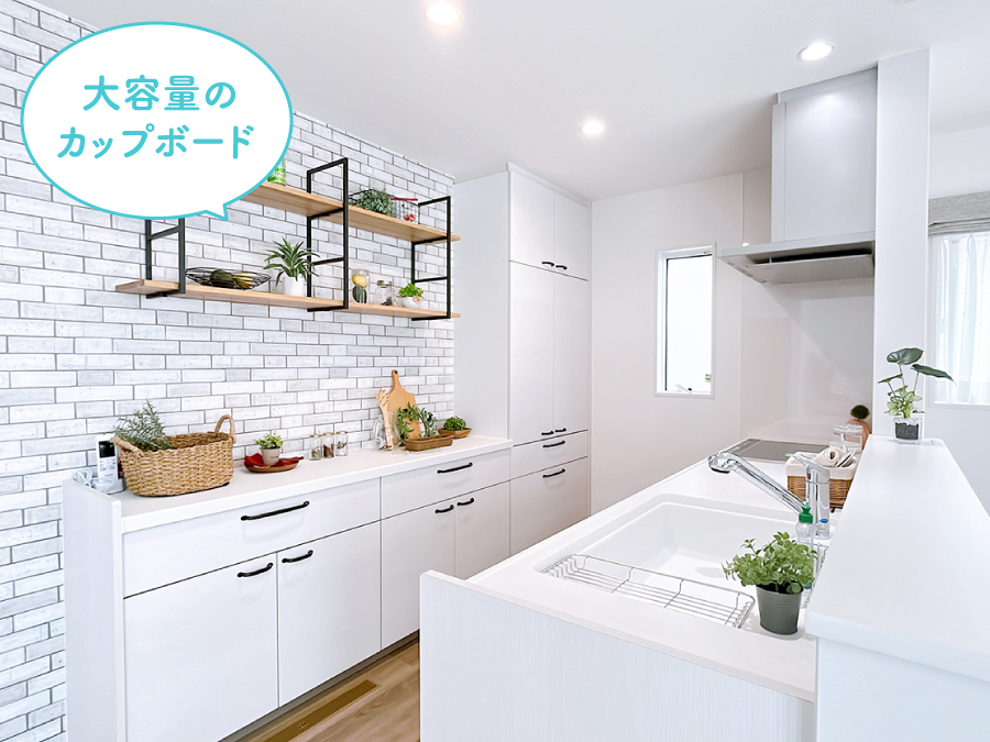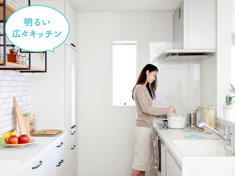 掃除のしやすいIHコンロと、作業しやすい広々ワークトップが魅力のキッチンは、料理好きも納得の設備。Panasonicのラクシーナを採用し、収納力・機能性ともに充実。食器洗い乾燥機も完備で、家事の時短にも。