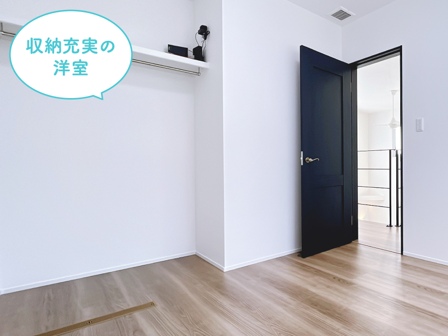 ベッドや勉強机をゆったりと配置できる洋室は、子ども部屋や趣味のスペースにもぴったり。日当たりも良く、ネコちゃんのくつろぎスペースとしても大活躍します。