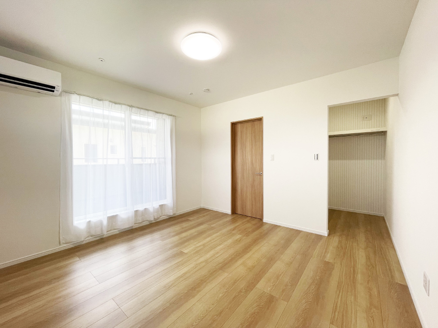 8帖の主寝室はナチュラルカラーでまとめた落ち着いた空間。