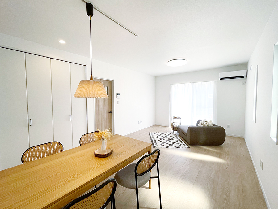 【性能×省エネ×デザイン性を兼ね備えた住まい】 高い耐震性能と太陽光発電を備えた、災害に強い安心安全の性能に加え スタイリッシュなデザインを兼ね備えた魅力的な住まいです。 【家族が自然と集まるLDK】 柔らかい日差しと木のぬくもりが安らぎの空間を作る18.5帖のLDKは、自然と家族が集まる心地よいスポット。 リビングとダイニングがほどよい距離で繋がるくつろぎ空間です。 【すっきり片付く大容量収納】 LDKにはパントリーのほかに掃除道具や日用品のストックなど様々な収納に役立つ便利な収納スペースを確保しています。 【アクセントクロスが映えるキッチン】 爽やかなグリーンのアクセントクロスがワンランク上のおしゃれキッチンを演出。お家カフェのような空間で、日常に彩りをプラスします。 【ゆとりある10帖の主寝室】 主寝室は広さが心地よい10帖!オープンタイプのクローゼットも完備し、収納にも困りません。 バルコニーでは天候を気にせずに洗濯物が干せるうれしい屋根ありタイプです。 【多目的に使用できる7帖の洋室】 子供部屋としても趣味部屋や書斎としても使用いただけるゆとりある7帖の各洋室には、荷物や洋服をすっきり片付けられるオープンタイプのクローゼットを完備しています。 【心地よく使える洗面・浴室】 十分な広さを確保した洗面脱衣所は、混みがちな朝晩でもストレスフリーに使用していただけます。 浴室には1日の疲れを癒していただけるゆったりとした広さの浴槽を採用しました。 【大きな荷物も仕舞える土間収納】 玄関にはシューズクロークのほかに、土間収納を完備しています。 家の中に入れたくない、アウトドアグッズやベビーカーなど大きなアイテムも便利に収納できます。 【お出かけ・帰宅時に便利な玄関WIC】 玄関すぐ横に約2帖のWICを設置。コートやバッグなど外出アイテムの収納に便利で、身支度や帰宅後の片付けもスムーズに。家族みんなで使える、便利な収納スペースです。 間取り 3LDK+納戸+パントリー+土間収納+ファミリークローゼット 土地面積 170.02㎡(51.43坪) 建物面積 110.95㎡(33.56坪) 販売価格 2,990万円(税込) 仲介手数料無料、外構一式無料です。 この物件を見学する 間取りFLOOR PLAN 配置図 1F 2F 玄関横にファミリークローゼットとして使える2帖のWICを併設。 2階の洋室は全て収納付き!さらに収納に便利な2帖の納戸を設置。 主寝室は広々10帖にオープンクローゼットを併設。室内物干し付きで雨の日も安心。 VRで暮らしを体感 この物件を見学する その他の区画 号地 1号地 7号地 販売価格 3,170万円(税込) 3,090万円(税込) 土地面積 170.04㎡(51.43坪) 170.02㎡(51.43坪) 建物面積 106.82㎡(32.31坪) 110.95㎡(33.56坪) 間取り 3LDK+畳コーナー+土間収納+パントリー 3LDK+WIC+パントリー+畳コーナー 畳スペース 〇 〇 土間収納 〇 × 詳細・お問合せ 詳しく見る 詳しく見る この物件を見学する 分譲住宅へ戻る