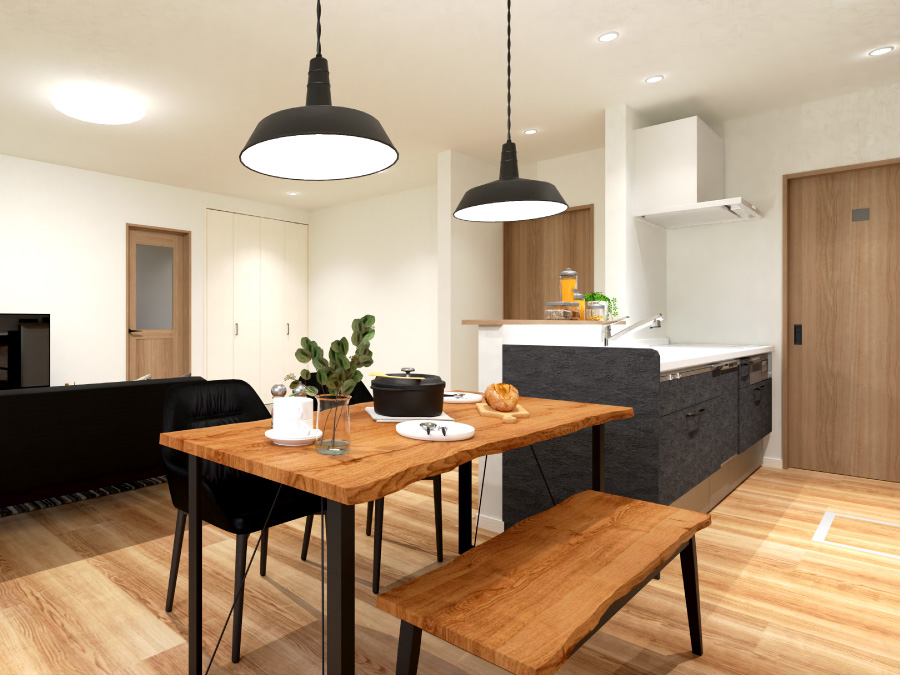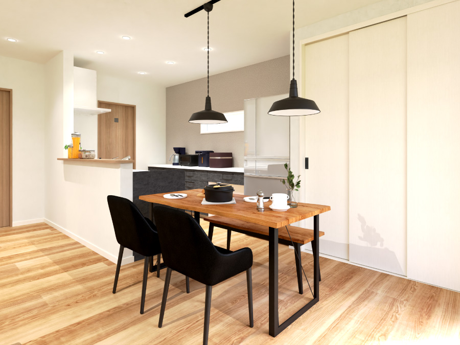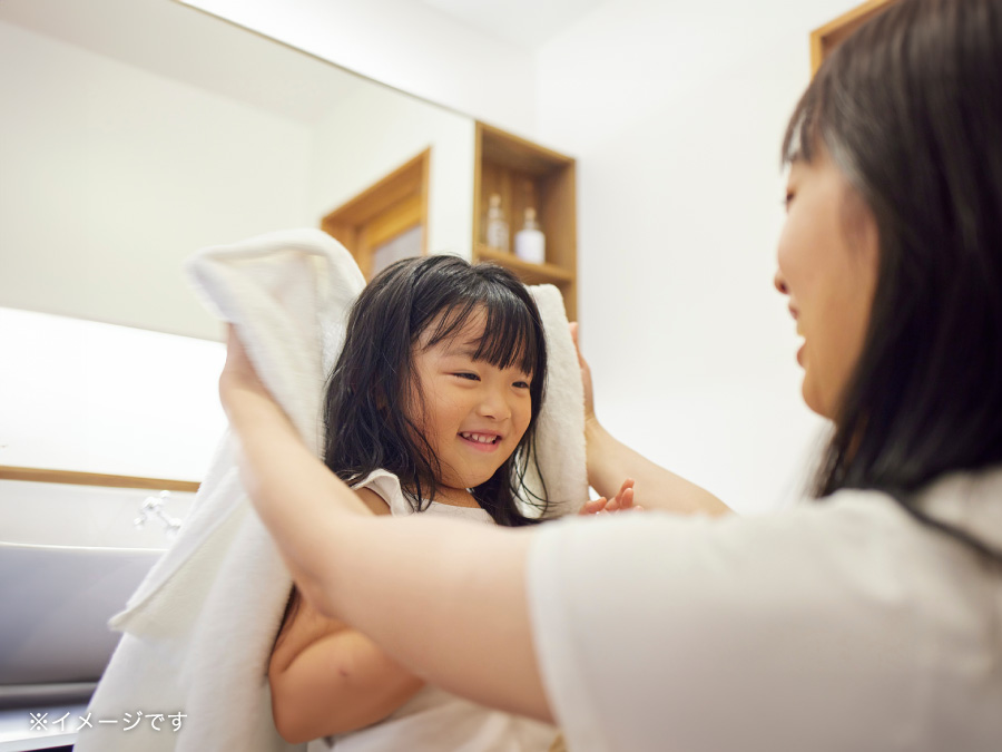 - 余裕のある洗面スペースや水回りをまとめた設計で、家事育児がスムーズに行えます。