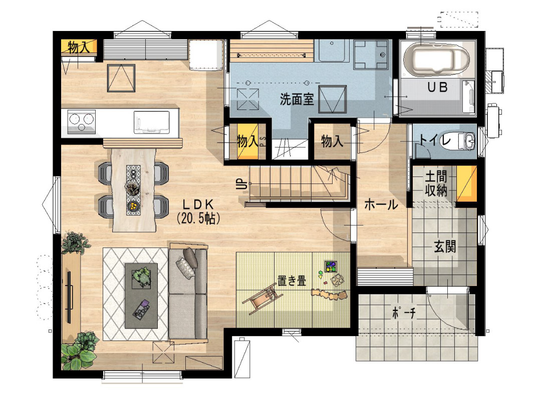 忙しい共働き夫婦をサポートする機能的な間取りです。