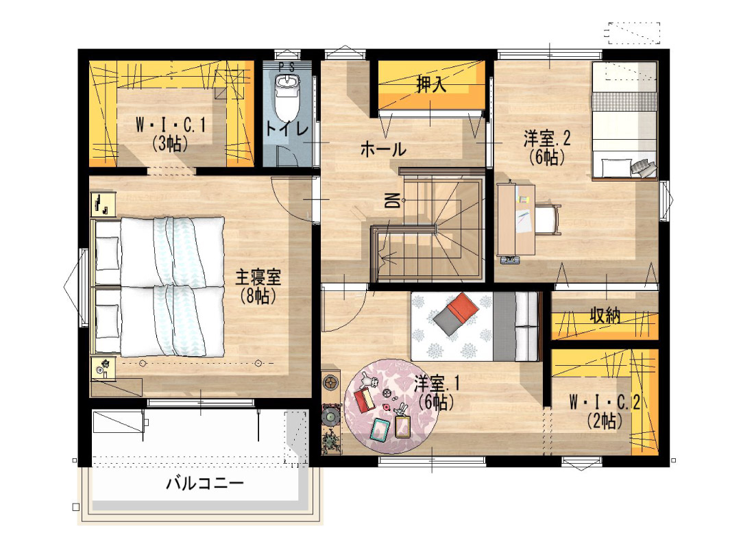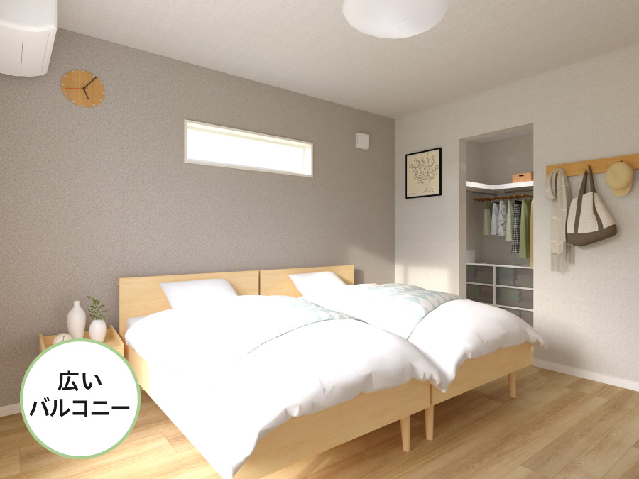 柔らかな色合いのインテリアがリラックスタイムを演出する主寝室は、ゆとりの8帖空間。