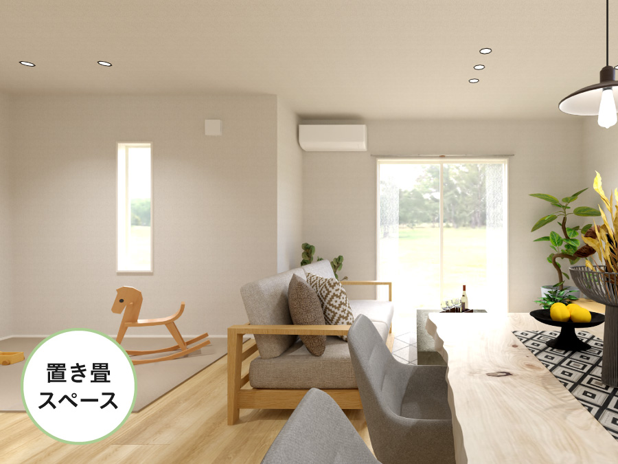キッチンから見渡せる置き畳コーナーは、ちょっとした休憩スペースとしても子どもの遊び場としても、便利に使用いただけます。