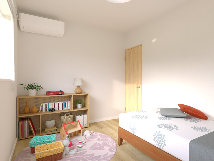 6帖の2つの洋室には、それぞれの部屋に十分な収納を確保。子ども部屋としても、趣味を楽しむ部屋としても、ペットの遊び場としても多目的に使用できる空間に。