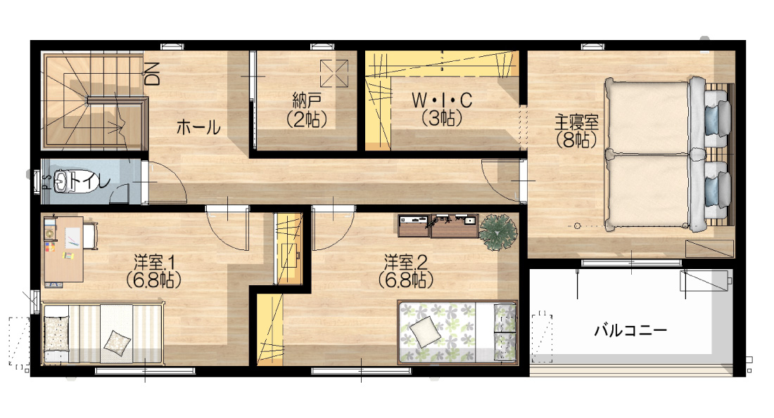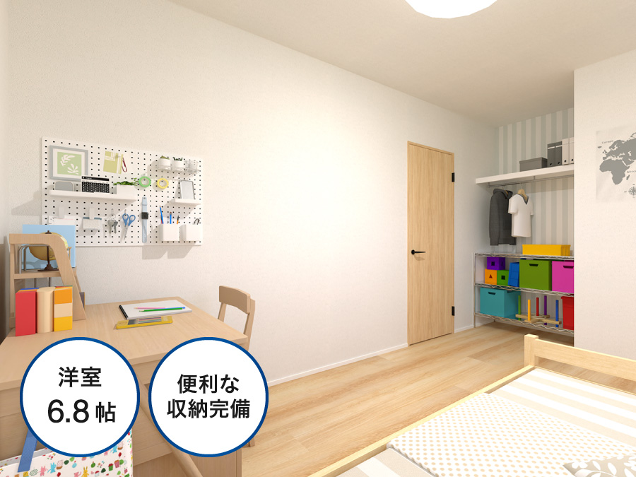 6.8帖の洋室を2部屋完備、子ども部屋としてはもちろん、在宅ワークや趣味部屋としてなど、多目的に使用できる空間に。