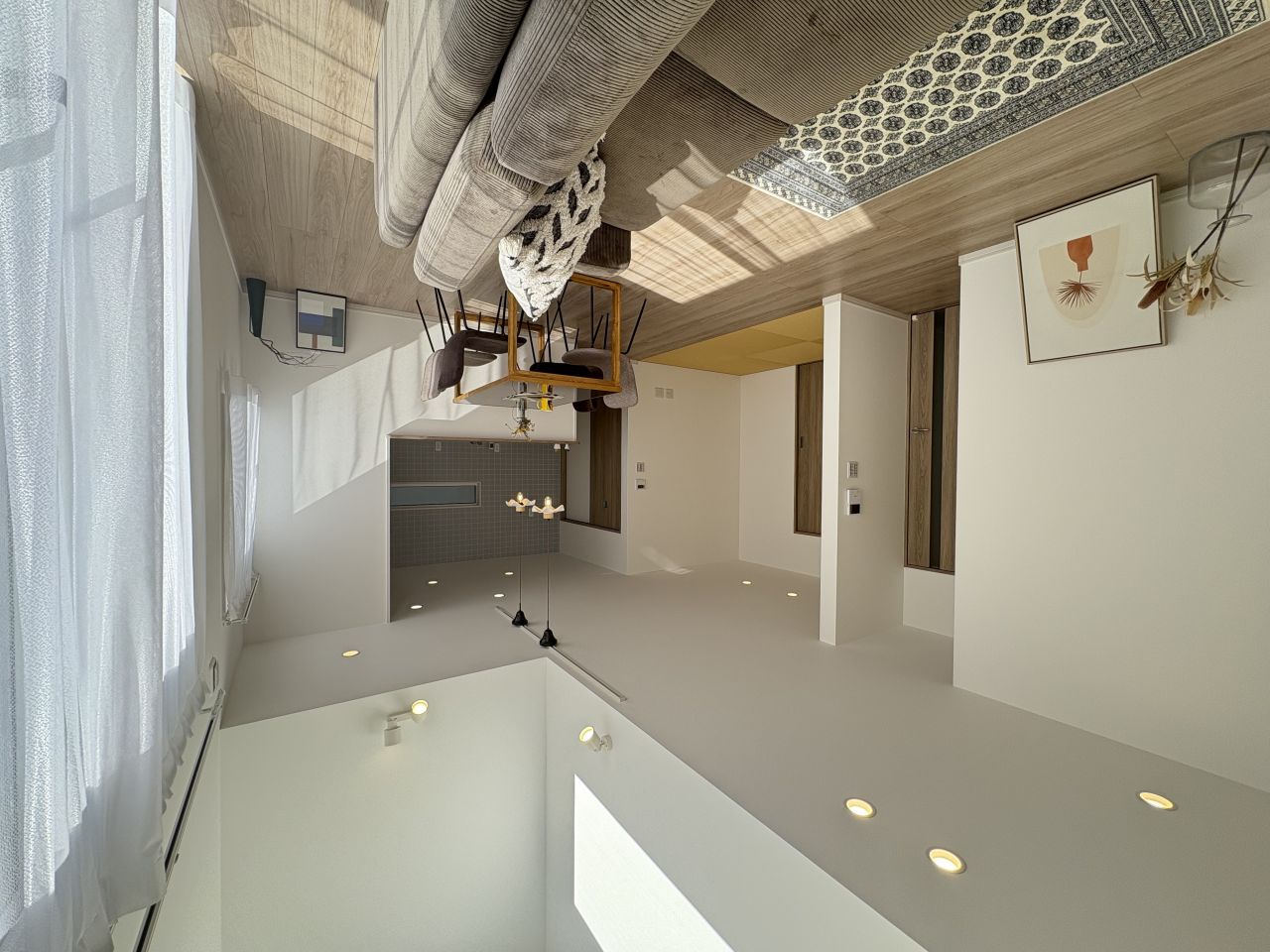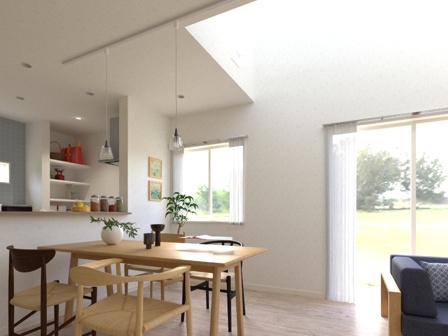 一部を吹抜けにすることで多面的に光を取り込み、より快適な住空間に仕上げています。