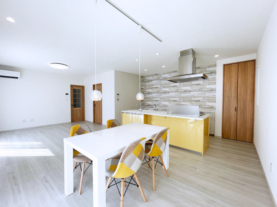 20帖超のLDKは南向きの大きな窓からたっぷりと陽差しが差し込み、気持ちの良い空間が広がります。