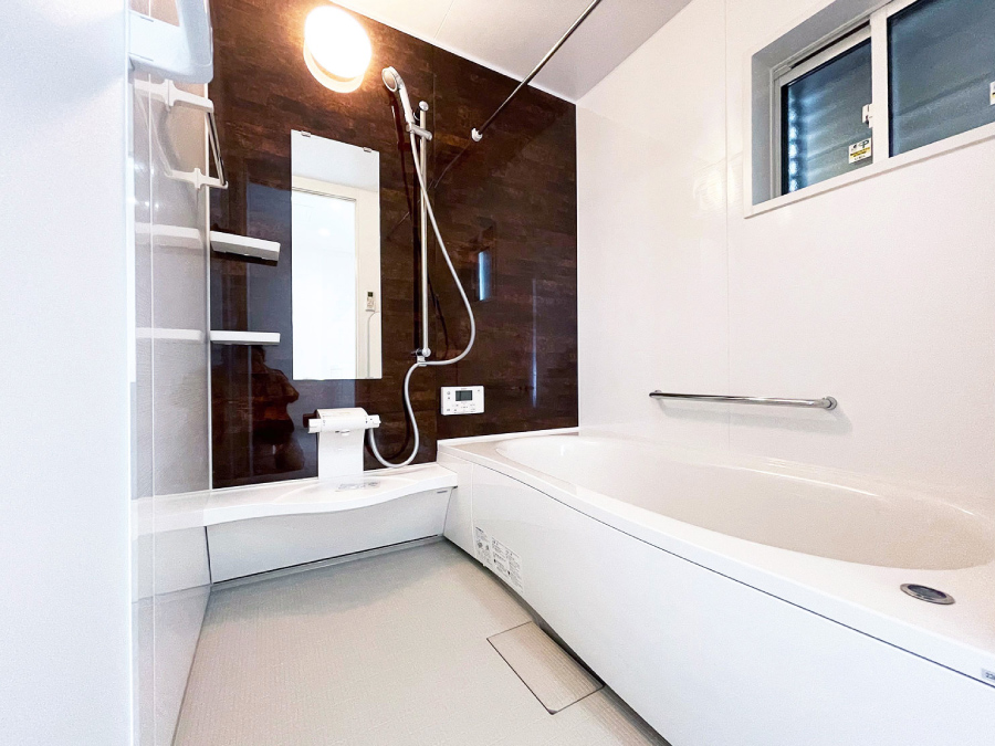 ワイドサイズで快適なバスタブをセットした浴室。スペースに余裕があるのでお子さんと一緒に入っても大丈夫!