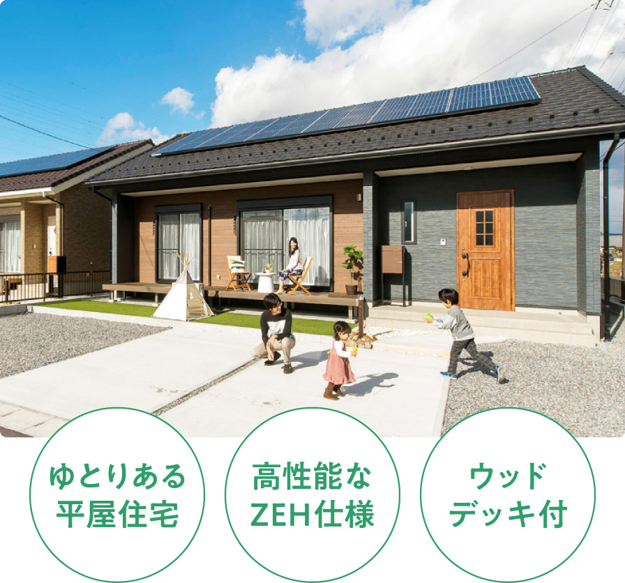 全邸がZEH仕様の太陽光発電付きで、環境にも家計にもやさしい省エネな暮らしを実現できる高性能な住まいです。