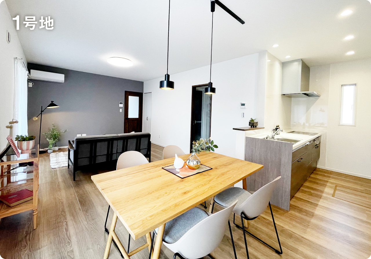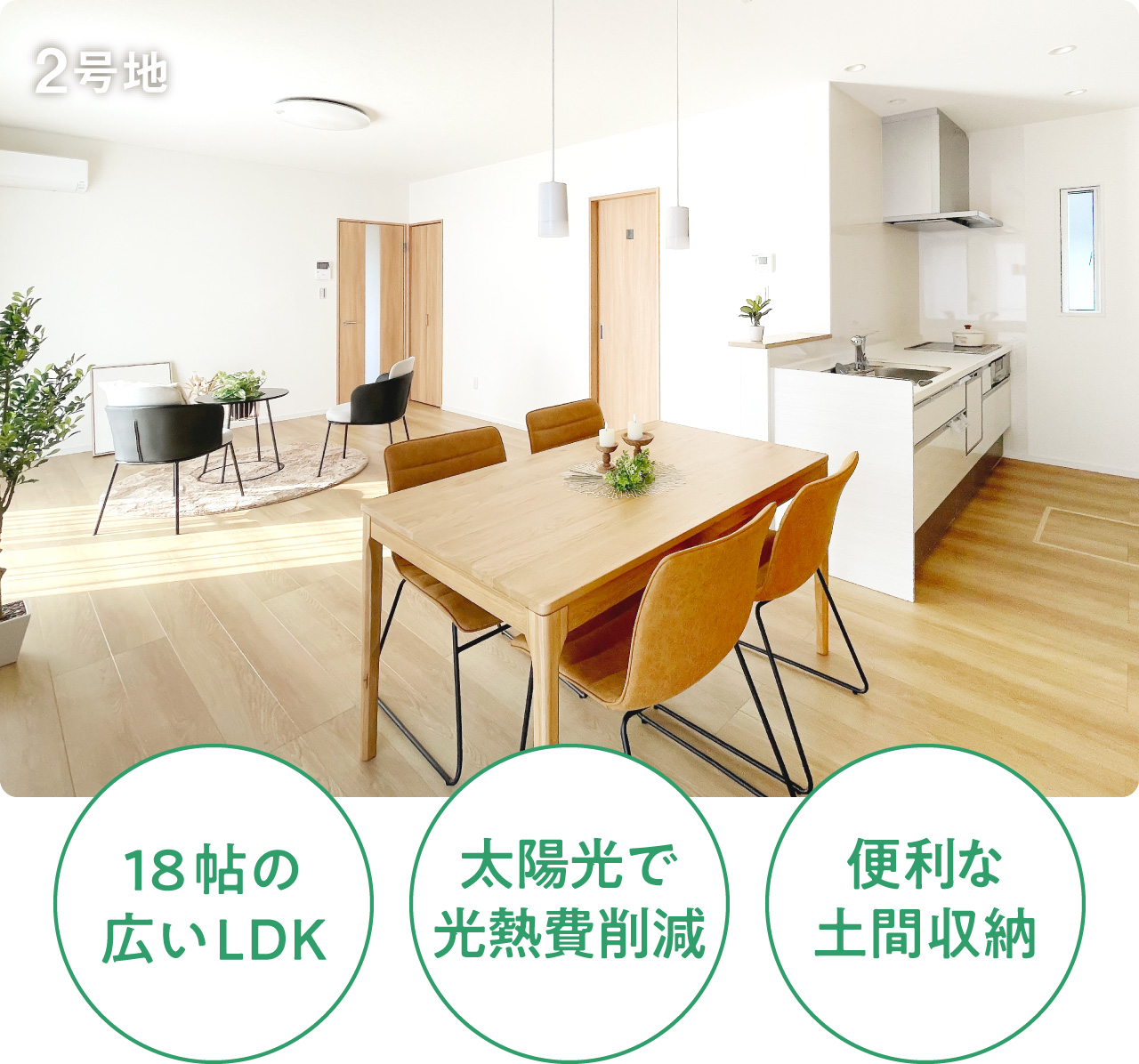 敷地46坪超&駐車場3台可のゆとりある設計が魅力の住まい。広くて明るい南向きのリビングや、家事動線に配慮した機能的な水回り、たっぷり収納など、長く快適に暮らせる住み心地に徹底的にこだわっています。