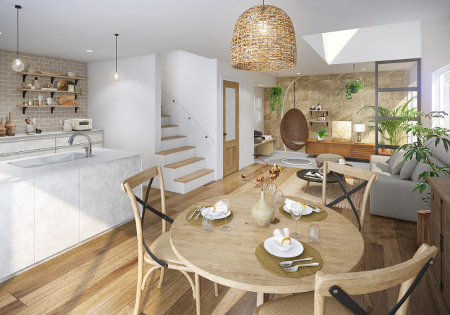 帰宅後に、自然と家族が集まる「リビング階段」のある物件は、子育て世代のファミリーに人気!