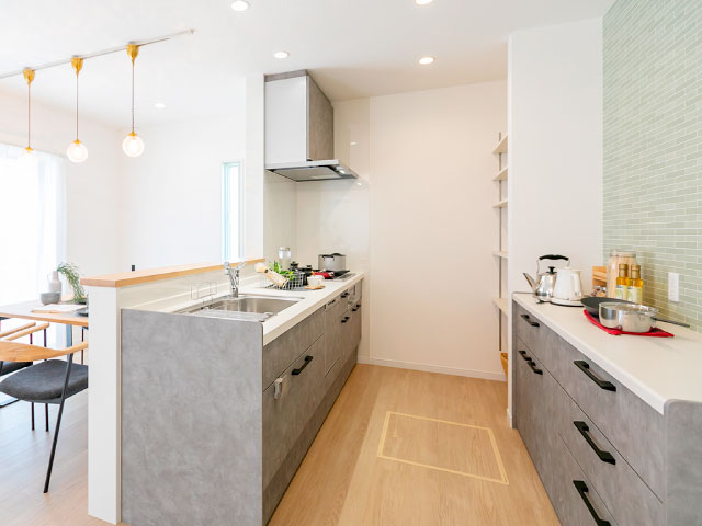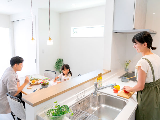 岡本住建が建てる分譲住宅のキッチンは徹底的に使いやすさにこだわっています。約20~30年間毎日使うキッチンだからこそ、安全・便利・時短を叶える設備が必要だと考えています。