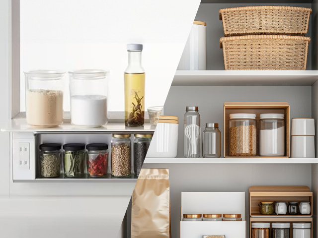 「毎日つかうもの」と「使わないもの」を分けられる便利な大容量キッチン収納とパントリー